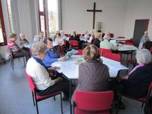 Unter der neuen Leitung der langjährigen ehemaligen Kirchenältesten Gudrun Schmitt gemeinsam mit einem Helferteam, treffen sich die 20 bis 30 Teilnehmer für 2 Stunden am letzten Dienstag im Monat im Dietrich-Bonhoeffer-Haus.